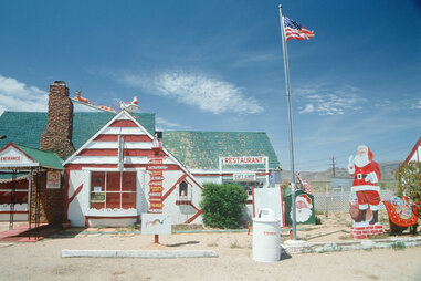In the middle of the Mojave Desert once lived a mecca for Saint Nick-themed, holiday joy. Founded in 1937 by Californian real estate agent Nina Talbot, the goal for the 80-acre town was to transform it into a Christmas resort that would attract full-time residents and a steady flow of tourists. During its first few years, the town built up a Swiss chalet-esque doll house, a post office for children to send letters to Santa, and the Santa Claus Inn, which served its famous rum pie within its air-conditioned restaurant. There was also a resident Santa Claus for children to meet all year round.