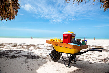 Keep driving south past Tulum (like, two-and-a-half hours south). Along Mexico’s pristine Costa Maya—the stretch of shoreline that runs from Playa del Carmen to the border of Belize—you’ll find Mahahual, which has a Tulum vibe minus the Tulum price tag. This bohemian beach escape is popular among Mexican travelers, and anyone who lives in or around Cancún talks about Mahahual with a dreamy, far-off look in their eyes. Picture shockingly white sand, jewel-hued water, a string of palapa’d beach bars and restaurants, and not much else.