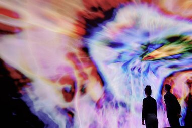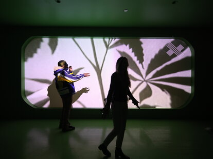 A floor below, The Agriculture houses the first urban grow farm, an interactive olfactory exhibit on terpenes, trippy macrophotography by Chris Romaine of Kandid Kush, and an immersive video poem by Curren$y called Seed to Soul. Then there’s the Hypnodrome, an audiovisual “guided levitation” by Australian artist Benjamin Gordon. Set to a soundtrack, images undulate and grow like a moving Rorschach test in an attempt to answer the question: Is it possible to feel high without being high? You’ll have to try it to find out.