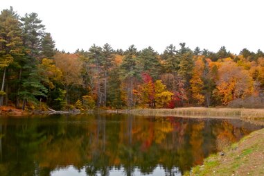 A little over five miles from Boston, this worthwhile hiking destination has prime leaf-peeping sights without having to go the distance. In fact, you can take the orange line to Oak Grove station, and it’s only a 10-15 minute walk from there. Take your pick from a number of trails including the Skyline loop, which, you guessed it, provides views of the city’s skyline. But if you’re looking for something less intense (since the Skyline is about an 8-mile loop), you can always take one of the trails that goes along Spot Pond.