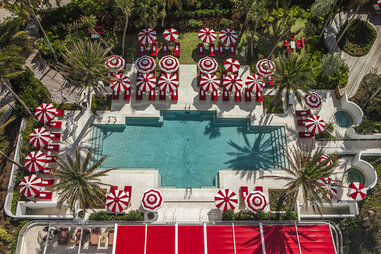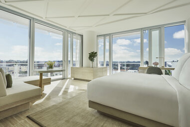 No hotel in Miami combines our 1930s grandeur and 21st century cool quite like Surfside’s Four Seasons. Built atop the historic Surf Club, this luxury property pays homage to the wealthy guests of yesteryear, where a stroll through stucco porticos and under restored frescos feels like a trip back to the heyday of Henry Flagler. The food and drink options are just as destination-worthy as the rest of the hotel—so don't leave without bellying up to the brilliant pink pastel and palm tree Champagne Bar, then settling in for a meal at Thomas Keller’s The Surf Club Restaurant. After, retire up to your room of pure modern elegance, where floor-to-ceiling windows look out on the Atlantic, and technology dominates everything from the bathroom lights to the flat-screen TVs.