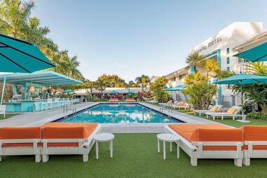 Don’t tell anyone, but the coolest stretch of Miami right now sits along Biscayne Boulevard and points west. And if you’re looking to explore the neon motels of MiMo and the live music and funky restaurants of Little River and Little Haiti, the place to stay is The Vagabond. The converted roadside motel has one of the coolest pools in Miami, complete with a mermaid painted on the bottom. Mr. Mandolin set up shop in the lobby, offering the same groundbreaking Greek and Turkish menu that made the original Mandolin a local legend. Hang around on weekends, and you might also stumble upon one of the best pool parties in Miami. It’s not the rager it was a few years ago, but it’s still quite the scene.