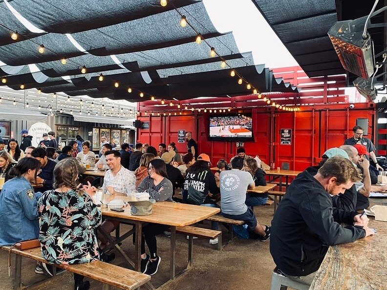Food halls are great places to take a group with complex requests—and that includes a group with mixed interest levels in sporting events. Those glued to the TV can look through the vendors at the food hall during commercials or at halftime, and people with less interest in the sports can wander the area, post up at the coffee bar, or flit back and forth between acai bowls and beer. Steelcraft is a food hall concept with three locations, each of which has a stylish courtyard, plenty of lovely outdoor seating, and a great collection of vendors, including Beachwood Brewing, Barrio Korean-Filipino rice bowls, and Tacos Arandas, among others.