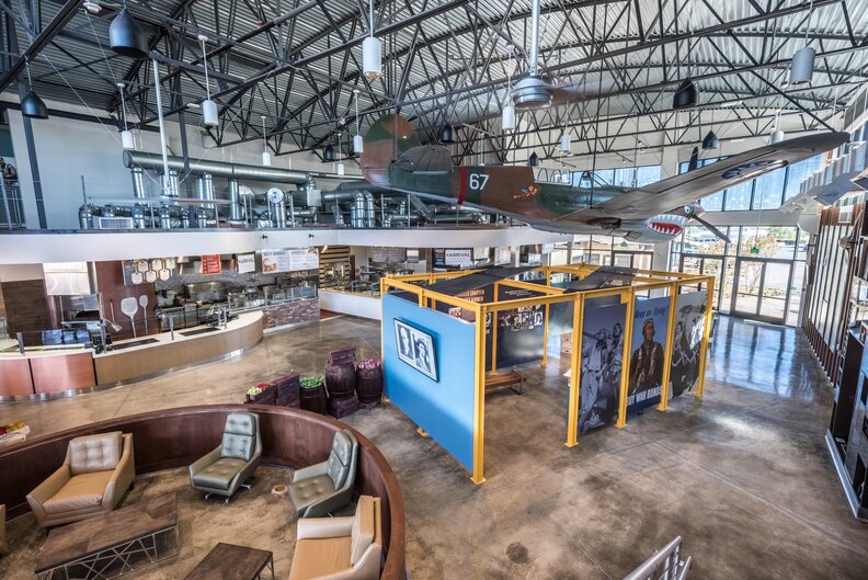 The aviation-themed food hall just outside of LAX is a great option for groups with kids because they have an outdoor playground and also a series of exhibits all about aviation history, exactly the kind of thing to keep them entertained while you keep an eye on the game. There are six different food stands with options like burgers, pizza, and chicken & waffles, and there’s also a full bar. They have a whole set of game-day specials for the Super Bowl this weekend, including barbecue combo packs, discounts on beer, and specials on pitchers of drinks.