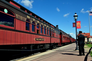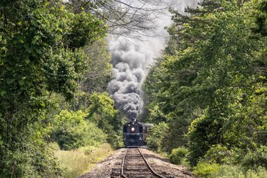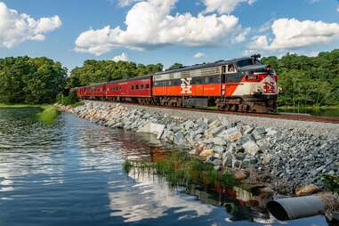The oldest rail line on this list is a quick trip through Lancaster County's Amish Country, with farmhouse-pocked expansive countryside and rolling hills in the distance. It was once used to transport goods from the industrial heart of Pennsylvania to the coast, before being restored in the 1960s as a passenger train. The first-class and president's trains are outfitted to look like Gilded Age luxury, and options also include musical date nights and a Murder Mystery Train experience. Though the ride to Plymouth is brief, the family-friendly excursion is definitely jam-packed.