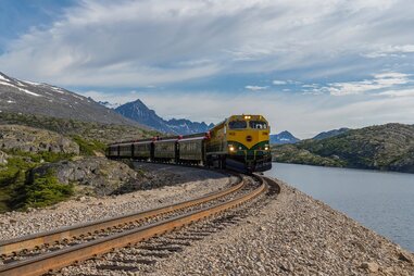 As you cruise along the side of frighteningly sheer cliff-drops on this narrow-gauge railway, you can't help but wonder who in their right mind actually built this thing during the Klondike Gold Rush of 1898. The train departs from Skagway on three different excursions, all of which take you up 3,000 feet in 20 miles, past glaciers, mountain lakes, and thunderous waterfalls. The signature trip travels the original miner supply route to Carcross, Yukon, and stops at a restored station house in Lake Bennett. Or, you can take the train past Bridal Veil Falls and Dead Horse Gulch to White Pass Summit, a 40-mile round-trip journey that traverses massive trusses that are not for those with a fear of heights.