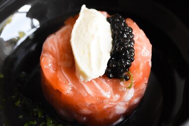 Known for their sustainably sourced and high quality offerings, Saltie Girl has plenty of options to sift through, including petite, grande, and royale seafood towers piled high with fresh oysters, littlenecks, and Jonah crab salad. There’s also a new Italian-inspired seafood pizzeria, Seafood Pizza by Saltie Girl, stocked with lobster, clams, caviar, smoked salmon, and tinned fish atop fresh-baked pies with hand pulled mozzarella, burrata, taleggio, and reggiano.