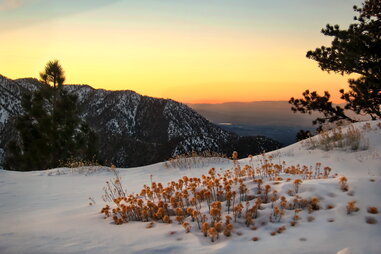 It may sound a little sad to transplants who grew up with snowy winters, but there is a tradition among some Northeast LA-area youths to grab a couple of coolers and drive up Angeles Crest Highway after the first big rain of the winter, find some snow and fill the coolers with it to bring back down the mountain for an LA snowball fight. The winding, scenic Angeles Crest Highway is an easy gateway to snowy adventures, with hiking trails and plenty of turnouts where you can pull over and stomp around in fresh-fallen snow, and if you happen upon the right hill there’s even some sledding to find. The road and the early turnouts can get crowded on weekends, so you may want to pick up a breakfast burrito from Lupe’s Place, sandwiches from Berge’s, or coffee and pastries from Constellation and prepare to head a little farther up the mountain. It might be wise to pick up some chains for your tires, too, but don’t worry—you can still return them the next day if you don’t end up needing them.