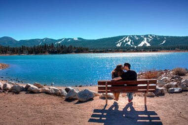 There is a gem hiding in the San Bernardino mountains, a small town tucked between popular Lake Arrowhead and Big Bear (both of which feature later on this list). Green Valley Lake is the adorable alpine retreat you didn’t know you needed, a remote getaway at 7000 feet of elevation with an array of cabins and only 300 full-time residents. That means it’s quiet, whether you’re headed there in the summer for mountain biking, camping, and canoeing or for snow play, hiking, and solitude in the winter. There are plenty of empty hillsides for sledding and trails to explore, and it’s just a few short miles from Snow Valley Resort for skiing, tubing, cross-country skiing, and snowshoeing.