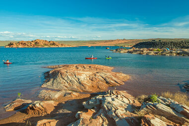 Bordering the Delaware-sized Grand Staircase Escalante National Monument in southern Utah, this rarely visited jewel—only 64,000 people visit annually—allows you to peep fossilized dinosaur bones before trekking through an ancient petrified forest. Anglers can also test the bluegill and rainbow trout-stocked waters of the Wide Hollow Reservoir. Come nightfall, lay your head down in a refurbished Airstream at one of the coolest new glamping resorts in the country, Yonder Escalante. In addition to spa-like bathrooms, the property hosts movie-nights at their drive-in theater, complete with old classic cars and free popcorn.
