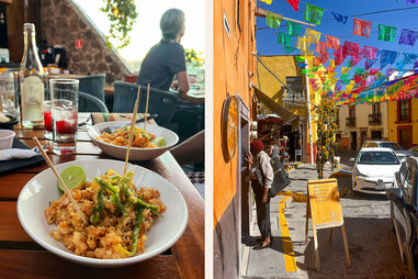 After hours of vicarious living through influencers’ seemingly endless vacation TikToks, it’s easy to get stuck pining for perfection. But a recent trip to San Miguel de Allende, MX, shattered my social media-hampered definitions of a perfect view. Whether during rooftop dinners at golden hour or while strolling through vendors markets with gelato in hand, there’s no better place to enjoy the breadth of natural and urban scenery than San Miguel, where colonial-era buildings in dusty sienna hues seem to shine against the setting sun. Because of the city’s distinct elevation changes as you traverse its various shopping districts, visitors can enjoy views of towering mountains, gentle waters, and consistent festivals and celebrations that overtake any number of city streets in a vibrant wash of joy sure to make any other setting feel placid by comparison.