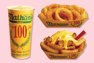 Obviously you’re not going to be pulling a Joey Chestnut here and eating your weight in hot dogs, or even one hot dog for that matter. Your choices here are few and far between but most definitely solid. Aside from the hot dogs, Nathan’s really is famous for its platonic ideal of a crinkle-cut fry. There’s a reason you can purchase frozen bags of these, but of course, it’s best to get them straight from the source and covered in bright Cheddar cheese sauce. The onion rings work well as a supplement with their perfect thickness and breading-to-onion ratio, while the lemonade is a sweet refresher that goes down smooth year-round, but especially in the summer.