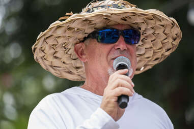 In 1994, Erik Emeley, a waterman from Crisfield who also owns a tiki boat business, formally coined the group of competitors, ‘The Chesapeake Cowboys.’ Emeley, who goes by the nickname “Flea,” took the group on the road, expanding from local festivals to dock bars up and down the Chesapeake coast. With his signature straw hat and Eastern Shore drawl, Flea acts as MC at every competition, encouraging a party-like atmosphere as he pumps up the crowd in between events.