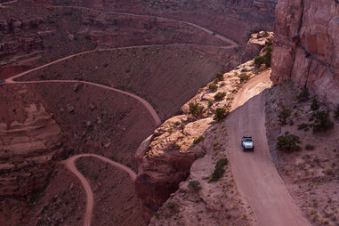 The Needles—which earned its name from the giant, needle-like spires jutting out of the mighty mesa—sits in the southeastern sector of the park, in the remote backcountry, meaning you’ll need four-wheel drive. If you’re setting out on foot, hit hiking trails like the Squaw Canyon Loop, Confluence Overlook, and Peekaboo—all of which are on the more challenging side—or take one of the shorter and easier routes off the scenic drive, like Roadside Ruin or Cave Spring. For those with a high-clearance, 4WD vehicle, Elephant Hill is an epic excursion that feels like it should be in Mario Kart. Just don’t get stuck, because towing fees can top $1,500.