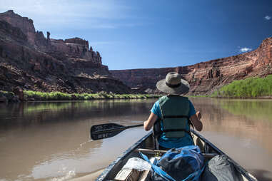 In Horseshoe Canyon—a sliver of land that sits west of Island in the Sky, about 2.5 hours from Moab—you'll find spring wildflowers, cottonwood groves, ancient petroglyphs, and slot canyons so perilously narrow that the landscape resulted in 127 Hours, essentially doing for canyons what Jaws did for the ocean. Here, in this far-flung wonderland, you can hike to the pictograph-clad Great Gallery or go horseback riding into the canyon from the west rim trailhead. If hiking isn’t your thing, go rafting in Canyonlands and take either a flatwater trip down the Green or Colorado Rivers in the summer, or a whitewater trip in Cataract Canyon.