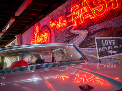 For Vegas, weddings were a strategic tourism push. By 1931 the state of Nevada relaxed its marriage laws, tossing out waiting periods and blood test requirements. Couples flocked to the desert for their quickie nuptials, and intrepid resort publicists sent announcements to their newspapers back home to promote the destination. More Vegas chapels started being built in the 1950s, including the famous Little White Wedding Chapel, and today there are about 100 in total. “You can get your marriage license seven days a week, 8 am to midnight, 365 days a year,” says Melody Willis-Williams, president of Wed Famously, operator of Little White Wedding Chapel, Vegas Weddings, and Viva Las Vegas Wedding Chapel. “And you can literally get married that same day.”