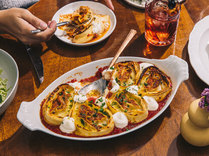 In a city filled with Italian food institutions, Don Angie, which opened in 2017, could still be considered one of the new kids on the block. But this smash-hit homage to Italian American cuisine from married duo, Angie Rito and Scott Tacinelli, has cemented itself to icon status with the help of a signature dish: the Pinwheel Lasagna. Meant for sharing and made with Bolognese sauce, mozzarella, and sweet Italian sausage, there’s a good chance that this eye-catching social media darling (and its crispy-edged top) already looks familiar. It’s just one of many must-try items on the West Village eatery’s menu, and how the restaurant continues to remain one of the most coveted reservations in town.