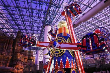 It's a few miles east of the Strip, but locals love Mystic Falls, an indoor park at the Sam's Town casino with a wild west mountain theme. Walk among the trees and you'll hear the sounds of birds chirping, wolves howling, and a rolling waterfall underneath a towering atrium. Laser and light shows take place every other hour from 6-10 pm on weekdays and 4-10 pm on weekends.