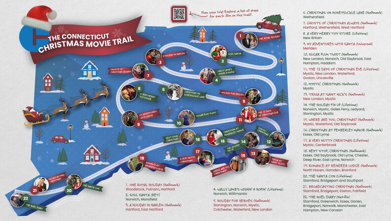 "Holiday films bring us comfort, nostalgia, and a bit of magic," Andrew Gernhard, producer of One Royal Holiday, The Noel Diary, and other holiday films, said about the trail. "Having grown up here, I know firsthand the character and warmth that make Connecticut an ideal setting to bring these films to life. We've had the joy of filming so many holiday scenes here, and I think fans will love experiencing Connecticut through this lens."
