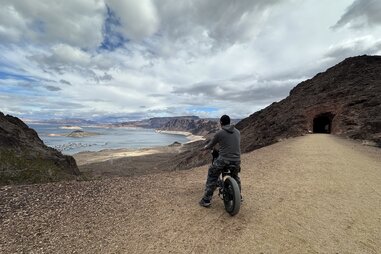 The trail spans about 3.5 miles, retracing the route where railroad tracks once delivered supplies to workers constructing the Hoover Dam. You'll pass through five tunnels carved from volcanic rock while overlooking Lake Mead itself. It's a great place to jog, stroll, or even walk your dog, but taking an e-bike tour is the most fun of all.