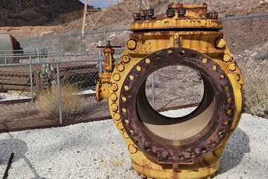 The path becomes more rugged as it shifts from National Park Service land to Bureau of Land Management territory, eventually passing by an outdoor exhibit known informally as the Hoover Dam Boneyard, where large pieces of discarded machinery are displayed. Listen carefully, and you'll hear the sizzle of electricity coursing through a power station that processes electricity from the dam.