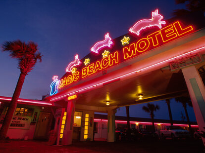 Motels, meanwhile, aren't incapable of flipping the script. "At first, when we were traveling, we tended to find motels not super accommodating. Hotels were nicer," Margaret Bienert, who co-runs the popular Instagram account A Pretty Cool Hotel Tour with her husband, Corey Bienert, said. Together, the pair explore hidden-gem-themed hotels and motels, which they also collected in the book Hotel Kitsch.