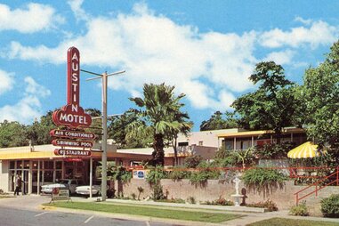 Throughout the late 1910s and into the '30s, affordable automobiles became an entire country's keys to freedom. The 1920s unspooled new highways across the American landscape. Travelers from all levels of socioeconomic status started hitting the road and never totally stopped. And lo, a distinctly American roadside culture was born in the "motor hotel."
