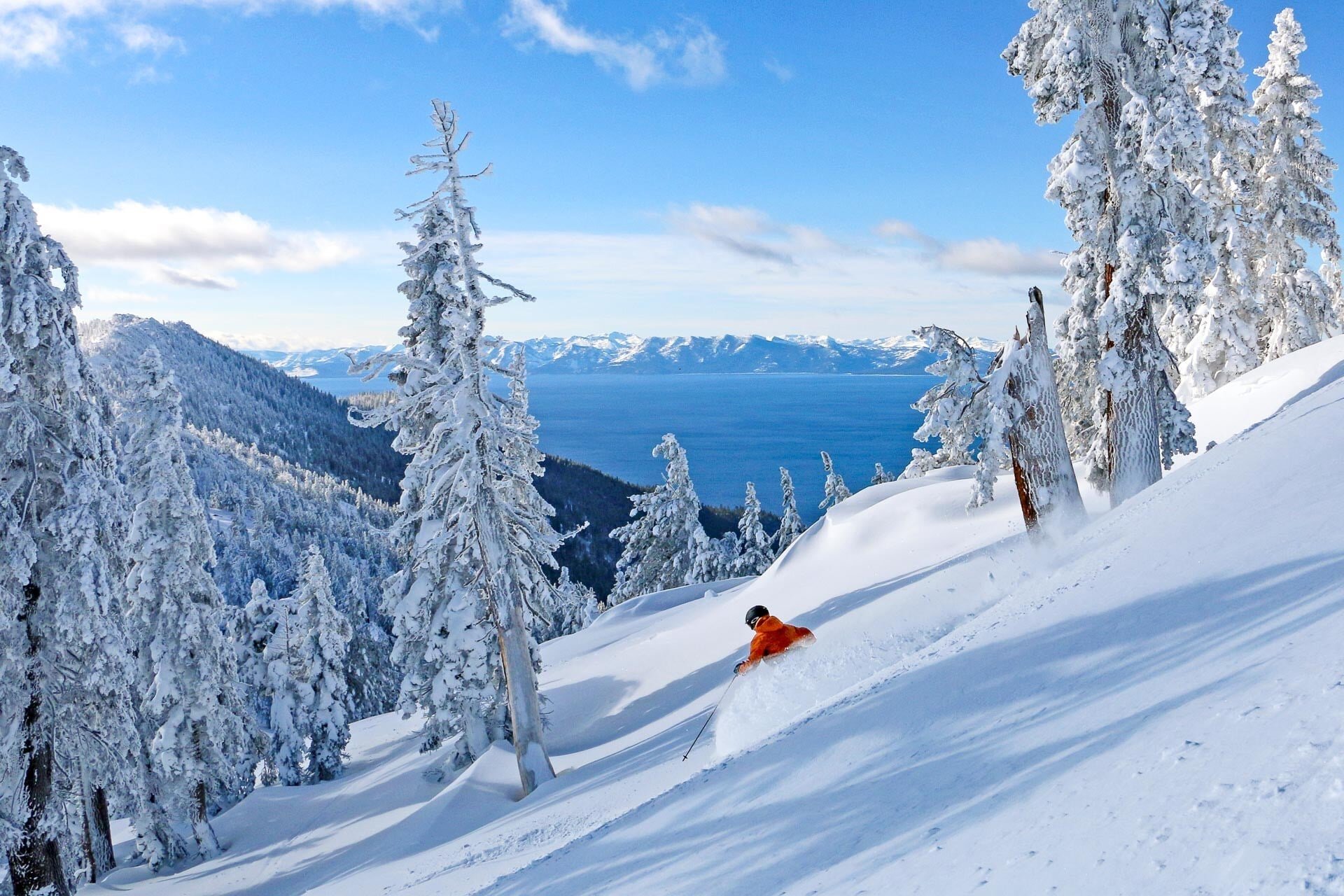 Famous for its après scene, Heavenly is one of Tahoe’s largest resorts (28 lifts and 97 runs) and highest (10,067 feet) with by far the most vert (3,500 feet from top to bottom). It stretches between both Nevada and California and opens up to what might be the best views in America.