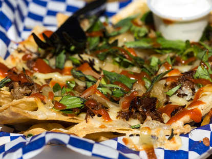 Formed by three Caucasian <em>offspring</em> of Austin's culinary school, Pretty Thai For A White Guy is a trailer on the grounds of the Moontower Saloon, now dishing out stuff like Far East fusion nachos w/ pulled pork, sour cream, Thai basil, onions caramelized with serranos for heat, and Sriracha.