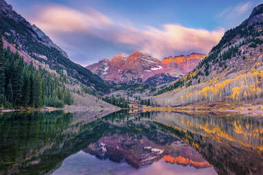Looming over Aspen, the one-two punch of Maroon Peak and North Maroon peak isn’t just an iconic sight in Colorado: The side-by-side crags are the most photographed peaks in North America. With their iron-enriched red hue and tendency to reflect off of the mirror-like lakes at their base, the Elk Mountain two fourteeners are also the centerpiece of some of the most beloved hiking trails in the entire state amid the Maroon Bells-Snowmass Wilderness, a 182,000-acre natural area so rich in Alpine beauty you’ll be hearing about it again shortly.