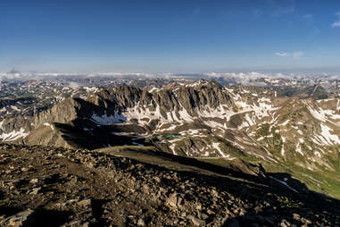 Another popular Elk Mountains fourteener inside the Maroon Bells-Snowmass Wilderness Area, climbing Capitol Peak is a strenuous affair that will get you a lifetime-achievement badge for hiking. But hit the 15-mile Capitol Peak Trail and you'll catch the kind of 360-degree view that practically sears itself into your mind: Snowmass Mountain to the south, Maroon Bells to the east, and beyond them the silhouette of the Continental Divide. And if you aren’t in the mood to set your calves ablaze to get that view, Capitol Peak looks lovely from afar as well.