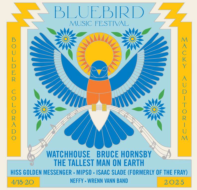 Bluebird Musical festival will take place in Boulder, Colorado between April 18 and 20, 2025. The festival lineup will feature Watchhouse, Bruce Hornsby, and the Tallest Man on Earth. Additional performances will include Hiss Gold Messenger, Mipso, Isaac Slade (Formerly of The Fray), and more. Tickets for full weekend passes will start at $259 and include admission to the gala. You can buy tickets and learn more about the festival at BlueBirdMusicFestival.org.