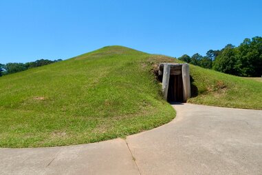 People have continuously lived on the Macon Plateau for millennia—17,000 years, to be exact. It’s suspected that the first inhabitants arrived to hunt Ice Age mammals. The enormous earthworks Ocmulgee National Historical Park is known for today—which include burial mounds, a (reconstructed) ceremonial earthlodge, and earthwork trenches—were built by the Mississippian people, and were considered sacred by the Ochese Creek Nation who came after them. After hiking through the site, head to the visitor center, which displays about 2,000 of the 3 million-plus artifacts excavated from the site during the largest archaeological dig in American history.