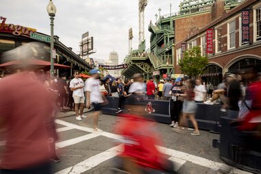 Fenway Park doesn't have a dedicated parking lot for tailgating. Instead, the surrounding streets are an extension of the park experience, offering endless food, memorabilia merchants, and entertainment like stilt walkers and big brass bands.