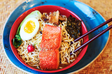 Ted Stevens Anchorage International Airport is the main airport in Southcentral Alaska, so this will be your starting (and ending point). Flights are frequent from Seattle (a common connection point for Alaskan travelers). Rent a car on site, and don’t skip out on a warming meal at Pho Lena, a family-owned Southeast Asian spot just minutes from the airport, where you can indulge in noodle soups, curries, and savory noodle dishes.