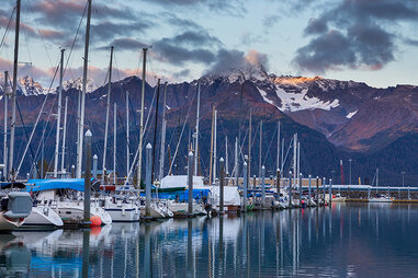 Seward, a port city on the Kenai Peninsula, is a popular spot for the commercial fishing industry and for tourists to enjoy glacier cruises, fishing expeditions, and more. You’ll want to arrive in Seward by 11am to catch the 11:30am or 12pm glacier cruises exploring the Kenai Fjords National Park and Resurrection Bay (the rides are slow and long to reach the untouched glaciers, so you can nap on board). If you have extra time at the dock, keep an eye out for seals, which often swim in the local harbor. Back in Seward, dine at The Cookery, an oyster bar and seafood spot showcasing local fare.