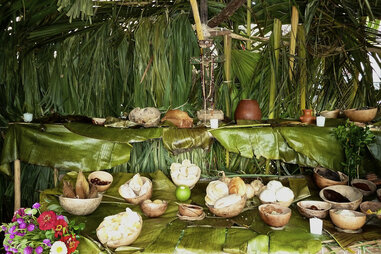 Don’t go to the Yucatán Peninsula expecting the usual skulls and skeletons and wild processions. The Maya here do celebrate the holiday, locally called Hanal Pixan, but with a different aesthetic. Ofrendas are usually built out of lush palm and banana leaves, while the celebrations at cemeteries are more subdued.