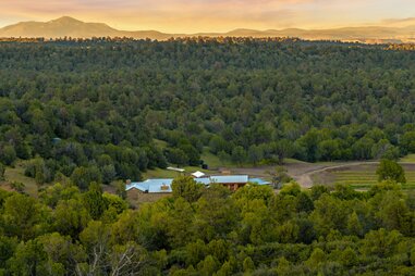 A couple of hours from Phoenix, TERRA farm + manor is tucked into the high-desert hills, surrounded by trees, scrubby bushes, and occasional cacti, away from neighbors and about 30 minutes from the bustling town of Prescott.