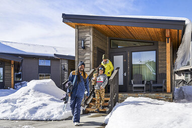 For a great location with lots of gathering places: Outbound Mammoth is a recently-renovated hotel in the heart of town that features a whole lot of fun places to hang out. Fire pits dot the expansive grounds, Bar Sierra has a stylish pub space with an arcade room, there’s a wine bar in the lobby, and an array of picnic tables in front of the excellent Cafe Crěpe food truck. There are rooms in the main hotel building and also a series of very cool studio cabins and larger standalone multi-story villas for bigger groups.
