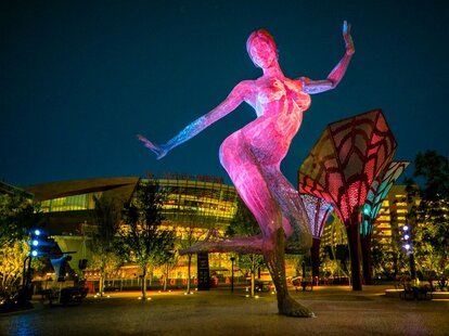 The Park stretches from the T-Mobile Arena to Shake Shack at New York-New York, making it the ultimate party spot before and after Golden Knights games. There's usually some pop-up fun at Toshiba Plaza, but you'll want to check out the beer and brats at Beerhaus, roast beef sandwiches at Top Round, and lobster rolls at Luke's Lobster. Walk across the street for cocktails and live music at NoMad Bar.