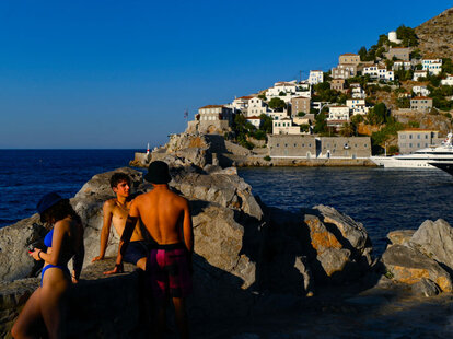 A visit to Hydra isn’t like a visit to your typical Greek island; you won’t find miles of sandy shores anywhere in sight. Instead, much of the swimming is done off bathing platforms close to the port, including at Spilia and Hydronetta. These platforms are essentially just rocky outcrops with steps leading down, that have had handrails bolted on to make it easier to climb in and out of the sea. Whether you want to go for a swim or simply sun yourself on a rock like a contented seal, these platforms make for a uniquely Hydrean experience. Visitors wanting a more typical beach experience can venture further afield, although the island’s beaches are made up of tiny pebbles, so water shoes are a wise investment. If you’re looking for a little beachside luxury, there’s Mandraki Beach Resort, a hotel that occupies the island’s only sandy beach (and whose loungers cost a pretty penny to rent).