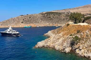Fortunately, considering the car ban, Hydra is an island best explored on foot. One of Hickey’s favorite things to do on the island is hike through the mountains. “Sometimes people can get stuck on the port and in the town,” he explains. “I love to climb up and hike out this wildly beautiful island to truly connect with it.”