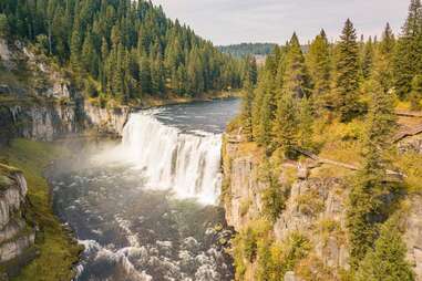For longer trails with a more wilderness feel, head to Caribou-Targhee National Forest, where you can set up your tent at a no-frills campsite or plan a day hike where you just might be the only person hiking through pine trees. About 25 minutes south of Island Park, you’ll run into Mesa Falls, a 10-story-high thundering waterfall also within the Caribou-Targhee, that’s sort of like a mini Niagara Falls within a mini Grand Canyon. Some of the falls can only be reached by a short hike along a well-maintained dirt path, while other falls can be accessed via a series of wooden boardwalks and steps.