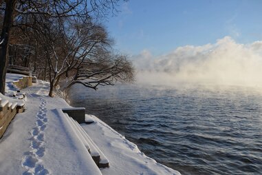 As evidenced by the Friday fish fry, an omnipresent supper club ritual throughout Wisconsin, this is a state that takes its fish seriously. And for those who want to reel in their own supper, ice fishing on Lake Geneva is an apt way to keep the party going year-round. Outfitters like Geneva Lake Bait & Tackle offer guided fishing excursions (and equipment rentals) all year long, including in the winter, when area lakes become frozen sheets of thick ice. Outings are available on Lake Geneva, as well as nearby spots like Lake Como and Delavan Lake, presenting the unique opportunity to drill down through the ice to hunt for bass, pike, walleye, and more. Ice shanties, which are small huts that can be erected on the ice, are optional add-ons that provide some semblance of warmth. If you don’t catch anything, just head to a nearby supper club, like Mars Resort or The Duck Inn, for all your fried fish needs.
