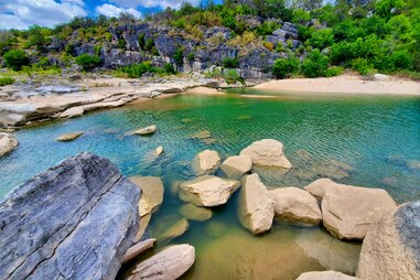 The latter can be seen at Pedernales Falls State Park, a 5,000-acre swath of green space, hills, babbling brooks, and small-but-mighty waterfalls along the Pedernales River. Ideal for swimming, hiking, picnicking, mountain biking, horseback riding, and exploring with your dog, there’s much to do in a relatively contained area. While you can’t swim by the falls, the more docile portions of the river provide refuge from the ensuing heat, along with fishing, tubing, and kayaking. For hiking, options range from the modest half-mile Twin Falls Nature Trail, culminating with a panorama of the falls, to the more strenuous six-mile Wolf Mountain Trail, zigzagging through canyons and along Mescal and Tobacco Creeks.