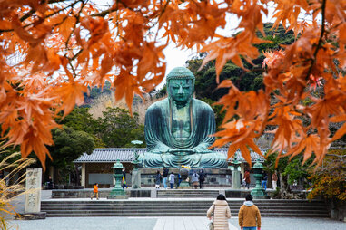 If a nearly 50-foot-tall bronze statue of the Kamakura Daibutsu sounds magnificent, know that it’s even more impressive in person. Surrounded by nature, it exudes peace and serenity. The statue’s history is almost as amazing as its appearance; construction began in 1252, and it was originally enshrined in halls that were destroyed by typhoons and earthquakes. Throughout it all, the great Buddha remained standing.