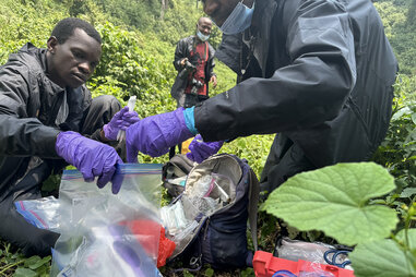 If one of the gorillas is not feeling okay, it means my day will be longer than usual. I spend more time monitoring them and try to get a non-invasive sample, like the saliva they leave after chewing on a plant, to investigate in the lab. The next day we have what’s called an intervention. No gorilla is treated outside the forest. Whenever they fall sick, I dart them and we treat them right there. We even have a portable X-ray machine if we suspect there is a fracture. The only difference with humans is we can’t use a cast made of plaster of Paris—gorillas will rip it off. So we use fiberglass and paint it black to match their fur. Then after two months, we can cut it off of them.