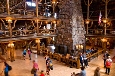Hotels inside the park: If you want the full experience inside the park but prefer to sleep in an actual bed, you can’t do much better than Yellowstone’s most in-demand hotel, the iconic Old Faithful Inn -- a national historic landmark and the largest log cabin in the world. It’s open May through October, and rates range from around $330 for a standard to over $800 per night for a suite. If you want to stay at the Inn but can’t stomach the price tag, book a room in the Old House. You’ll be using communal bathrooms (unless you book an old-timey individual “tub room” with a giant bathtub) and the rooms are sparse, but also under $150. If you ask for one of the rooms on the end (numbered in the 40s or so) you can actually get a decent view of Old Faithful from your bed. Either way, the geyser is literally right outside, and there’s a whole upper deck with Old Faithful-facing benches.
