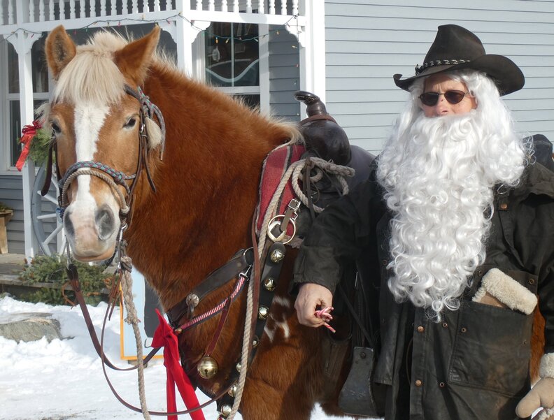 The most important thing you need to know about Cowboy Claus is that he’s not the actual Santa Claus, but merely in his employ. “I'm here to assist Santa Claus, because he has so many stops that he has to make,” he says. “I'm a distant cousin. And that’s what I tell all of the people as I ride into town.”