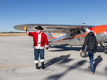 On December 15 doors open at 9:30 am at the Cheyenne Airport Terminal to see Santa off to the North Pole. At 10:30 am Bravo boards the plane and up, up and away he (and his pilot) goes. But they don’t actually go anywhere. “The airport is pretty large, because we also provide the airstrip for the Air Guard,” says Bravo. “We just quickly go up and then land back down. Just enough to keep the magic in place.”